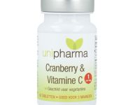 Unipharma Cranberry & Vitamine C bevat Vitamine C: Vitamine C zorgt mede voor een goede weerstand, ondersteunt het energieniveau en helpt het (natuurlijk) immuunsysteem van de lichaamscellen. Het bevat daarnaast 200 mg Cranberry concentraat per gemakkelijk slikbaar tabletje.